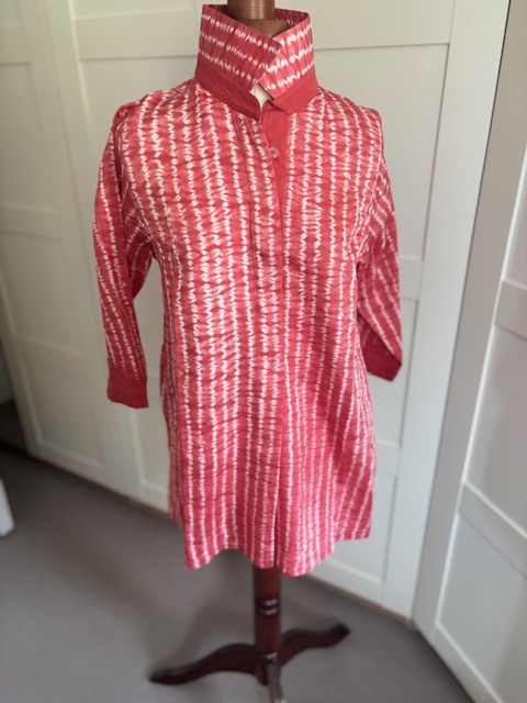 Sibori shirt in cotton Hip length Buttoned to below the best 3/4 sleeves