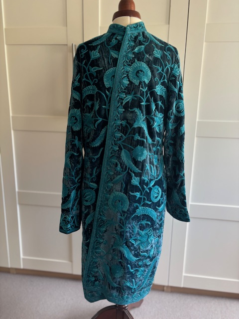 Velvet coat in turquoise.